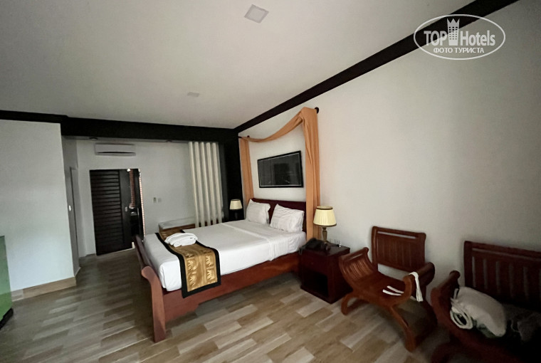 В данном отеле останавливались во время экскурсии в Камбоджу из Паттайи. Отель очень уютный, много зелени, цветов, различных пальм, заприметили даже дерево манго с плодами. В зеленой зоне есть кресла-коконы, беседки, скамейки. Корпуса двухэтажные. Номера поразили просторной площадью и высотой потолков-мы ожидали от Камбоджи более скромных условий размещения)