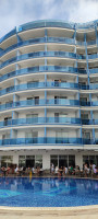 Отель стоит у дороги но шума в номерах и на территории нет совсем. Территория компактная и очень ухоженная. Со всех номеров вид на море, чем номер выше тем вид лучше. Есть три или четыре номера на нулевом этаже с торца комплекса под бассейном. Отдыхающих там не видел может для персонала. Номера компактные, чистые, современные кровати удобные. Питание за все время проживания было на 5+. В баре у бассейна очередь из 2 - 3 гостей на пляже в баре никого. Пляж всегда чистый, убранный . Лежаки всегда были пустые. Вход в море хороший глубина через 5-7 метров. На пляже две линии одна на песчаном берегу вторая на траве где есть тень от кустов и пальм, стоят беседки, есть душ, туалет и бар. Wi-Fi на пляже не работает на территории отеля и в номерах есть. Пешком до пляжа 20 минут на трансфере от отеля 4 митуты 30 сек. Ходит каждый час. SPA замечательное хамам турецкая баня и сауна. Остальным не пользовались. Анимация от отеля не зависит потому что аниматоры во всех отелях меняются за сезон не один раз. Нам понравилось пати на пляже.