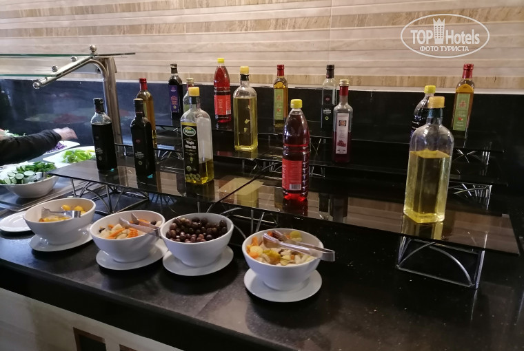 Из первых плюсов отеля хочется отметить его расположение, отель не находится в городской черте, но и добираться от аэропорта менее получаса. После выхода из автобуса мы попали в просторный, красивый, хорошо меблированный ресепшен. Здесь есть бесплатный вай-фай, а если придти по-раньше утром , то и довольно резвый. За стенкой находится бар , где в плоть до полуночи подают замечательный кофе, алкогольные и нет напитки, в дневное время здесь появляются и исчезают вкусные пирожные. На втором этаже ресепшена находится спорт бар. Пару раз, мы там попадали на живую музыку, здесь можно бесплатно поиграть в теннис любуясь не таким уж далёким морем.