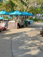 Территория у отеля отличная, много зелени, ухоженные газоны, много локаций для фото, большой бассейн с водопадом, неплохая пляжная линия, один вид на Храм Истины чего стоит. Проблема с шезлонгами, народа много, а наглого народа еще больше, те кто встают в 4 утра считают что можно занять и по несколько на каждого, и в тени, и на солнышке, мало ли где ПОСЛЕ ОБЕДА полежать захочется... , лучше бы они их платными сделали, т.е. если вы предпочитаете отдыхать, а не ловить шезлонги, для вас остается газон, если нужна тень, на полотенце на песке или валунах сбоку от пляжа если позагорать. В отеле мы проводили не много времени, предпочитали Ко Лан. Пляжные полотенца выдают возле бассейна, менять можно без ограничений. Есть пара магазинчиков с отличными ценами, от количества еще и скидки делают, обратите внимание на гель с алоэ, стоит всего 50 батт, а покраснения после загара снимает на УРА, не хуже Пантенола. С краю пляжа делают массаж, не пользовалась, сказать ничего о качестве не могу. Завтраки стандартные, без изысков, но и голодными не останетесь. К обеду открывается ресторанчик в саду, цены выше чем в соседних заведениях, но вкусно и макашница возле бассейна, цены низкие, но и качество так себе, взяли в первый день рыбу, костлявая, когда приготовлена непонятно, слегка разогрели на гриле, а внутри холодная, больше кроме кукурузы ничего там не брали. Кстати, все что берете в отеле можно записывать на номер, это вычтут из депозита, важно для тех кто рано выезжает и не знает где потратить 2 000 батт. Из минусов еще можно отметить плохой интернет, постоянно переключались на свой. К плюсам - отсутствие комаров... то ли нам так повезло... но на территории ни разу не покусали.