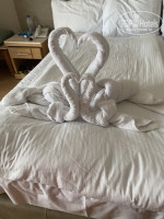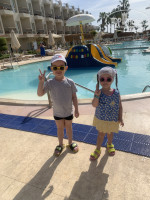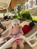 Вроде и все хорошо, но в тоже время и не очень. Для 4*-вполне себе. Оооочень красивое здание снаружи и территория внутри. Но отвратительные номера-очень старые, раздолбанные. Сервис и обслуживание- вроде и стараются, особенно за чаевые, но все равно не дотягивают. Например уборка: вроде и прибрался, лебедей накрутил, а унитаз грязный, пыль везде, на столе пятна от напитков ни разу не вытер, волосы из слива в душе не убрал(даже те, что были до нас😂). С коктейлями на баре та же тема: немцам наливают красиво и в хорошие бокалы, нам в пластиковые одноразовые😂 пока чаевыми бармена не прикормишь-так и продолжается. Лайфхак: снимайте на видео😉 сразу стараться начинают👌🏻виски отвратительный. Коктейли однообразные. Еды много, но очереди и вся однообразная. Национальные десерты вкусные. Финики, обузы, дыни-вкусные. Морепродукты только по выходным: либо кальмар, либо креветка, либо крабики. Шезлонгов впритык. Занимают с 5-6 утра и потом весь день не приходят на них лежать🤪 2 теплых бассейна: детский и взрослый. В детском горе старые, вода течёт только одной. Остальные бы уже тоже заменить надо. Взрослый аквапарк хороший. Достаточно этих горок, но бассейн без подогрева. Мы были в апреле, поэтому уже можно было купаться в целом и без подогрева, но в том, где подогрев, все равно приятнее. На ресепшене по-русски понимает только одна девушка. Остальные вообще не понимают. Приехали в 4 утра. Заселили в 14:00. В 7:00 надели браслеты, чтобы мы могли покушать хотя бы. До этого мы просто пытались поспать на диванах в лобби(очень неудобные). Потом переоделись в туалете и пошли к бассейну.