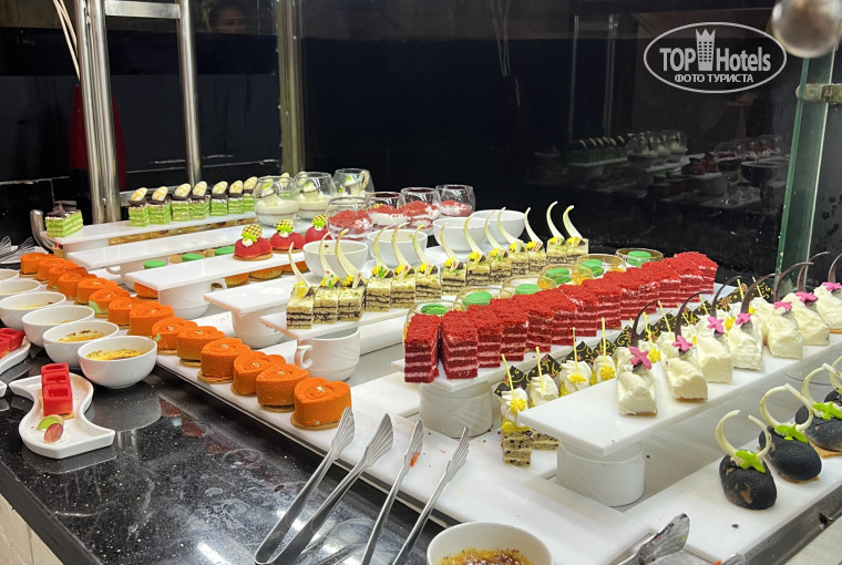 В отеле все было хорошо. Внимательный персонал, в ресторане правда, если начал кушать и решил отойти, то могут выкинуть еду (персонал слишком оперативный))). На завтраках каждый день были очереди из 5-8 человек за омлетом. Кофе вкусный, вафли венские с нутеллой - огонь! Отдельно порадовало, что есть детские столики и у детей своя зона с едой) Правда огорчило то, что креветки были 1 раз за 10 дней(.