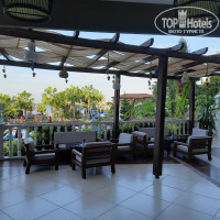 Территория не сказать, что очень большая, но уютная. Не так, что всё закатано в бетон. Зелёная, пальмы, деревья, кустарнички, газончики, приятно.