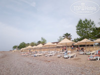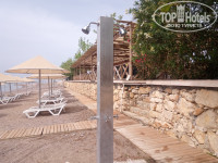 Пляж отеля начал функционировать с баром, лежаками, матрасами, зонтиками, душем с 8 мая. Он последний в бухте, рядом с островком.