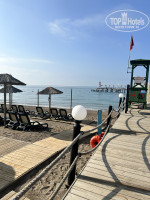 Территория отеля просто замечательная, очень все красиво,много места, большая отдельная зона для деток, так же детский и взрослый аквапарк. Пляж тоже хороший, песок и галька, на пирсе мало места для лежаков для такого количества людей.