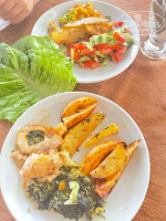На пляже только напитки без еды (чай, кофе-автомат с какао, горячим шоколадом). Но сгонять в отель за тонкими открытыми пирогами или выпечкой не трудоемко, близко.