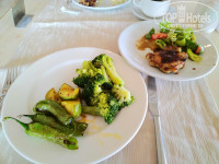 . Питание. За 131 тыс. (цена из Москвы за 11 полных дней с поздним вылетом) много не ждали. Готовят вкусно, но изысков, тематических ужинов здесь нет. На завтраки стандартный минимум ( 2 вида каш, хлопья, яйца во всех видах, овощи, колбасно-сырные нарезки, булки совсем простенькие+ мед в сотах, халва, тахина). Из фруктов только апельсины, яблоки всегда+ арбуз, персики (твердые). Что напрягло, то что венские вафли нужно печь самим в вафельнице, которая в начале отдыха была свободна, но к концу стали собираться очереди. Причиной этому стала замена одной жарочной поверхности с панкейков на омлет. На обеды ужины всегда 2 вида макарон, картофель фри или по-деревенски, рис, овощи гриль (перец, помидоры, лук), тушеные овощи в соусе + что-то для сторонников пп: брюссельская капуста, шпинат, брокколи, цветная капуста, тушеная капуста. Из мясного курица на гриле, рыба всегда + курица в виде шашлыков, тушёная, индейка на гриле, говядина, 2 раза были стейки красной рыбы. За наше прибывание 2 раза были кальмары, 1 раз мидии. Свежих овощей, отдельно порезанных и смешанных под салаты, достаточно, соусов много, стоят отдельно. Из минусов: все что не доели, на следующие приемы пищи ,подадут в виде холодных закусок. Делают пиде и примитивную пиццу. В кофемашинах кофе порошковый, не айс. На завтрак наливала заварной и смешивала с молоком. Чай в пакетиках в ассортименте, в том числе травяной. Кулеры с водой стоят в ресторане на открытой веранде. Алкоголь особо оценить не могу: пила пару раз пиво и вино. Красное сносное, белое не понравилось. Перекусов на пляже нет, в 15-30 у бассейна подают печенье. Мороженое в наше прибывание было у бассейна понедельник, четверг, субботу в заводских упаковках, а в воскресенье на ужине накладывали разные виды в рожки и стаканчики. Если еда на отдыхе на первом месте в плане изобилия, красивой подачи, кулинарных изысков, то подумайте об альтернативе. Питание отеля самая спорная часть среди отдыхающих, так как страдает подача и некоторые почему-то ждут изобилие пятерки уровня Кристалла, но не готовы за это платить. Нас в плане питания по большей части всё устроило, так как за эти деньги всё равно ничего более приличного не нашли бы.