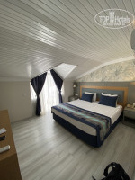 Заселение и номер: мы приехали около 16 часов, заселили сразу. Номер двухкомнатный family, нам достался на 3 этаже, фактически мансарда, окна в переулок и боковой вид на горы)