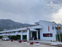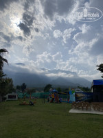 Территория отеля небольшая, но зеленая и ухоженная, особенно на фоне гор смотрится красиво.