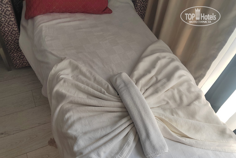 Полотенца кладут не по количеству гостей, периодически оставляли на двоих, приходилось ходить и просить еще комплект. А так как уборщицы знают только турецкий, это было довольно сложно... Пользовалась переводчиком.
