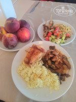Обед и ужин - супы, обычно двух видов, овощи, салаты, баклажаны, кабачки, иногда очень вкусные, макароны, картошка, рис, пару раз было что-то похожее на пельмени, но их местные, рыба, курица, баранина, на ужин готовят на гриле. В целом неплохо. Десерты однообразные... Фрукты быстро разбирают, были персики, яблоки, апельсины, арбуз и дыня.