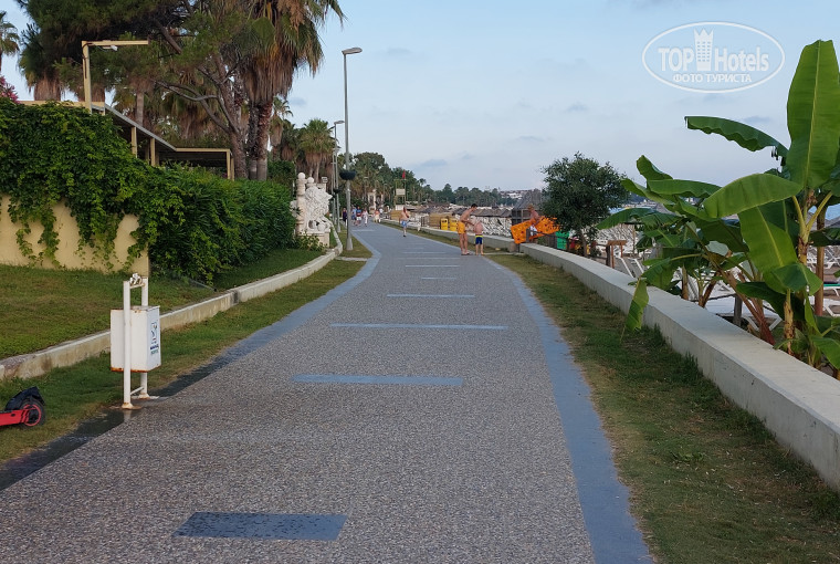 Приехали в 9 утра.Нас отправили на завтрак.После него сразу выдали номер с окнами на шоссе.Машины ездят днём и ночью,но нам не мешало, т.к. дверь с балкона закрывается плотно,ещё кондей жужжит,в общем спали хорошо.В номере хорошая мебель,удобный санузел,всё работает.В мини-баре вода газ и негаз.Нам приносили регулярно воду и уборка была 6 дней в неделю.Полотенца и бельё меняли.Пляж шикарный,песочек,вход плавный,море без волн,спокойное.До пляжа ровно 5 минут пешком.Идти нужно по подземному переходу,далее мимо отеля defne star.По пути есть сток,мы каких-то резких,неприятных запахов не ощутили.Прошли и прошли.Не знаю,кому там прям воняло.На пляже есть бар,туалет,душ.В баре только напитки: пиво,крепкий алкоголь, вино, кофе,соки,вода простая и минералка,айран.