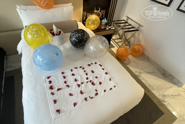 У меня был день рождения в момент отдыха и отель меня никак не поздравил в этот день. На следующие день был задан вопрос - поздравляет ли как-то отель? - на что был ответ - да, из полотенца делаем фигуру(рукалицо). Вы серьезно??? по итогу только уже вечером следующего дня стояла типо композиция из полотенца, лепестки роз и надувные шарики. Было не много не приятно, что забыли и что хотя бы могли фрукты принести(оставшиеся с завтрака) или есть в отеле пекарня, можно было бы не большой тортик(кусок торта).