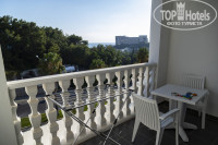 Большой плюс – это достаточно просторный балкон (у нас был с видом на море). На балконе два стула и стол, а также есть большая сушилка, на которой можно развесить не только купальники (см фото), также на балконе вечером можно включить свет.