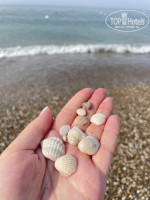 Море и пляж 🏝️. Море теплое, шикарное. Не такое прозрачное как в Кемере, видимо из того что все таки тут больше на дне песок. Были дни что были большие волны и они приносили мусор, но это уже виноваты сами люди. Пляж песчаный с полосой гальки при входе в море. Среди камушек изредка можно найти ракушки. У нас на них была охота каждый день 😅 Видели следы черепашек и у них даже была выкладка яйиц, которые отгородили. Очень мило что отели так заботиться о них 🐢