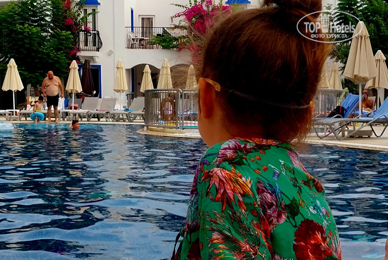 Приехали в 10.30 сходили на завтрак,в 13.30 нас заселили в номер 2101,Очень маленький, но уютный. Убирались в номере каждый день,полотенца меняли тоже. Территория отеля ухоженная,тоже каждый день Убиралась,еды выбор небольшой(2 вида мяса,2 раза за неделю была рыба,гарнир на выбор 1-2вида,всегда свежие овощи,зелень, которые растут на территории отеля,3 раза в день есть фрукты и сладости) если ваш ребёнок не ест суп и кашу,любит наггетсы и фри,то у вас проблем с питанием ребёнка не будет)) у нас были,к сожалению. На территории есть маленькая детская площадка, детские бассейны,один с горкой.анимации нет никакой вообще. Даже музыка днем у бассейна не всегда играла. Этот отель для спокойного тихого отдыха,не для тусовок.до моря 5 мин пешком,красивая набережная с живой музыкой по вечерам. Очень живописное место,в целом,в отеле нам очень понравилось! Из отдыхающих в основном поляки,турки. Персонал вежливый, молодые ребята,все большие молодцы.