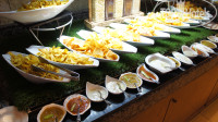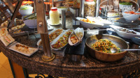 Сам ресторан небольшой, еды много в этом отеле ожидать не стоит, НО, готовят ОЧЕНЬ вкусно, выбор есть всегда. Во время нашего прибывания были: различные хлопья на завтрак, десерты сладкие (причем десерты разные как на вид, так и на вкус, есть похожие, но большинство различаются), салаты фруктовые и овощные, блинчики, оладьи и вафли печет шеф по утрам с различными начинками, сыры, колбасы, омлет так же делал шеф-повар с различными начинками, рис в разных вариантах и специях, макароны в разных заправках, картошка, супы на обед (может варианта всего два, но супы вкусные, у нас были молочный и томатный), так же шеф-повар готовит спагетти с разными начинками, различная выпечка (лепешки, хлеб, круасаны и т.д). Мяса много: утка, индейка, говядина, баранина, приготовлено всё на ура. Так же каждый ужин разная кухня, как-то был мексиканский ужин, было много начосов и заправок, различных бобовых изделий и т.д. Один ужин застали рыбный, была приготовлена гигантская рыба, рыбные салатики, креветки были и мидии, выбор всегда еды имеется, но не так много, как кто-то может для себя ожидать, по мне лучше качественно, но меньше, чем много и одинакового вкуса. Фруктов почти нет из того, что помню, дыня, бананы, апельсины, так же один день было манго. Напитки подносят официанты. На фото в отзывах кстати один из них, очень милый и хороший молодой человек. Писали многие в отзывах, что еда острая, мне за 10 дней попалась только одна острая рыба, ито один маленький кусок, больше острой еды кроме острых перцев мы в свой отпуск не наблюдали. Мне кажется, что для семей с маленькими детками (лет может до 5) выбора еды нет совсем, были какие-то молочные каши на завтрак, штуки 2 и всё, остальное рассчитано на более взрослую категорию.