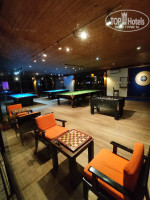 Их больше, чем ресторанов, и они расположены со всех сторон острова. Во все бары мы не ходили, буду рассказывать только о тех, где мы были. Кстати барная карта везде примерно одинаковая с небольшими отличиями, но атмосфера везде разная. Около главного ресторана Farivalhu есть целых два бара. Dhoni бар - находится на берегу океана около бассейна, работает с 7(!) утра и до последнего клиента, там есть не только напитки, но также мороженое и фастфуд (пицца, гамбургеры и т.п.). Мы ходили туда после обеда за мороженым, а также по вечерам встречать закат с коктейлями. Сидеть можно и внутри и снаружи на берегу океана. Но днём места снаружи занимают обитатели вилл без своего пляжа и ходят оттуда купаться в бассейн или в океан, поэтому под вечер там может быть мокро- грязновато и в приличной одежде не везде получится присесть. По вечерам здесь иногда выступает дуэт с песнями под гитару, раз в неделю на пляже проводят дискотеку. Но так как этот бар можно посещать с детьми, то по вечерам тут довольно весело, и если вы хотите посидеть в камерной обстановке и сфотографироваться на фоне заката, то может не получиться. Второй бар буквально в соседнем здании напротив порта - Kakuni. Он открывается в 16 часов и тоже работает допоздна. Места есть как внутри, так и снаружи. В баре есть экран, проводятся вечера караоке, кинопоказы и разные тематические вечера, часть бара огорожено под игровую для взрослых: бильярды, футбол, шахматы, дартс и т.п. Однажды, когда там никого не было, мы зашли туда с ребенком, но к нам сразу прибежала сотрудница и заставила нас оттуда уйти. Справедливости ради отмечу, что недалеко около детского клуба есть здание детской игровой, где точно также есть бильярд, футбол, дартс и т.п.