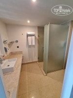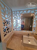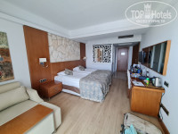 2. Номер. Тот, что и заказывали. Дали на 2м этаже. Предлагали еще делюкс двухкомнатный, но его надо было ждать, нам и этого хватало. Номер просторный, странный вопрос решения по поводу ванной и туалетной зоны, она огорожена не глухой стеной, т.е. Всё слышно. Нас это не смущало. Кровати раздельные, попросила объединить общим наматрасником, в итоге одной простыней сверху накрыли и всё, кровати разъезжались. Балкон большой, можно посидеть, есть столик и стулья, вешалка для сушки тоже есть. Тапочки и халаты предоставляют. Минибар с безалкогольными напитками пополняется 1 раз за заезд. Сейф есть. У на ничего не было поломано, номер норм, у других были претензии (вода не уходила и тд). По поводу шума. Да, шум есть в этих номерах, но при закрытой двери не слышно. Ну мы и засыпаем даже под музыку спокойно. Поэтому нас это не полновало. Зато утром глаза открываешь и сразу море видишь). Ночью спали с открытой дверью без кондиционера.