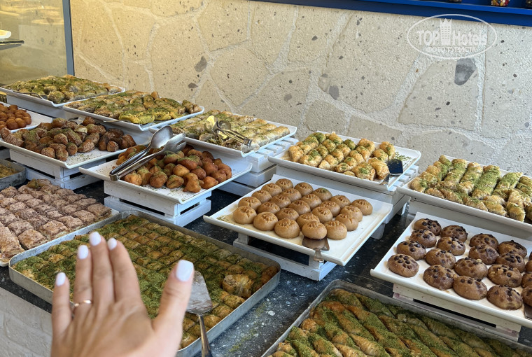 Ехали с мужем вдвоем в Турцию за пассивным комфортным отдыхом в красивый отель с вкусной едой. В целом всем остались довольны. Номер был в корпусе близко к морю, в 1-й минуте ходьбы. Это особенно радовало ) Номера довольно чистые, уборку делают ежедневно, но если нажать кнопку «уборка», иначе не заходят. Полотенца для пляжа-это тоже очень удобно. Их выдавали ежедневно. Шезлонгов было достаточно, но хорошие места нужно было занимать с самого утра до 7:00, но мы приноровились, до завтрака занимали и шли на завтрак. Правда некоторые отдыхающие занимают по несколько шезлонгов для себя в нескольких локациях: и у моря, и под пальмой, и у бассейна, поэтому хорошие места прям нужно постараться занять. Кормили вкусно, еды много, довольно разнообразная. (Есть только моментик с чистотой текстиля стульев в ресторане, в пятнах) Сладостей тоже много, пахлава вкусная особенно. Очень удобно, что есть несколько локаций с барами и едой и у бассейна и у моря. Вода всегда в доступе в холодильниках. Территория красивая, зеленая) Персонал отеля очень радушный и ориентирован на туристов, легко понимают и по-русски тоже. Отельный гид информацию доносил частично, без разъяснений, и поэтому мы, считай, зря съездили на шопинг, организованный туроператором. Нам сказали, что будет торговый центр, а по итогу туда не повезли. Сделали вывод просто, что нужно было узнавать все нюансы, подробно расспрашивать гида.
