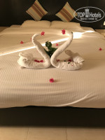 Начну с того что за год это была моя 3я поездка в Хургаду.В отеле в котором я хотела остановиться не было брони на нужные даты и выбор пал на этот отель только благодаря хорошим отзывам.Начну по порядку: Отдых у меня начинался с 15.09, заезд как везде с 14.00, т.е. обед и ужин мне гарантированы (это пометочка к пункту когда я буду выезд описывать).Я приехала в 23.00. Заселили в номер рядом с главным зданием на первом этаже,без балкона и видом на дорогу и стройку.На вид мне чихать,а вот отсутствие балкона печально (купальник же нужно сушить).И ещё я обнаружила,что нет воды для питья.А я была в дороге в общей сложности часов 20!Пить очень хотелось.Позвонила на ресепшн попросила воды.Мне сказали завтра,ложитесь спать))!Я поорала, сказал принесёт.Спустя минут 15 я пошла сама на ресепшн за водой.Оказалось,что мне ещё полагался пакет с ужином,который состоял из несъедобных булок и яблока.Всё это отправила в мусор.Утром я припоздала на завтрак.Он был до 10, я пришла 09.45 и впереди ещё стояла женщина за яичницей.Мне в данной роскоши было отказано и не соло нахлебавшись я пошла на ресепшн узнать где проходит поздний завтрак.Был о твет туда)) я говорю куда туда? Проводите и покажите.Фиг!!Иди туда не знай куда!В общем я так и не узнала где это.Попила невкусный кофе из пакета у бара и решила заняться сменой номера.В общем я сказала что мне всё равно куда будет вид,мне нужен балкон.Номер который мне предложили сначала был неплох,но находился на 4м этаже и лифт на этот этаж не ездил.Остановилась на неплохом номере на 2м этаже с видом на спа,без доплаты. Кстати,с переездом помогал носильщик,которому я заплатила в общей сложности 2 доллара,на последовательно он попросил у меня ватную палочку и без церемонно почистил уши.Вернёмся к номеру.Все номера неплохие,мебель не самая новая,но в принципе нормально.Уборка в номере будет только,если повесить табличку на дверь о просьбе убраться.Но у меня подозрения,что судя по пыле на телевизоре,в углах и за тумбочками,влажной уборки там не было давно.Но с уборщиком Ахмедом мне повезло.Он меня всячески баловал фигурками из полотенец, приносил воду и туалетные принадлежности в неограниченном количестве.В общем после перезда,я рванула к хваленному морю.Территория большая и идти по жаре довольно тяжело в общей сложности минут 15.На пляже не было никого)),немного людей лежали на пирсе.И этому было объяснение.Был отлив, море было в прямом смысле по колено по середине,по щиколотку в начали и по пояс с пирса.Короче-здравствуй лужа море!Заходов с пирса несколько и что зайти что выйти-это каждый раз аттракцион упадёшь или нет.Как то раз наблюдала,как плавала мертвая птица прямо рядом с купающими,работники пляжа посмотрели и разошлись.Так и уплыл трупик дальше.Один раз сами отдыхающие вытаскивалась немолодую женщину на Пирс с моря.Ей стало плохо и она начала тонуть.Типа спасатель был,но он всегда занят разговорами с девушками.Пляжные полотенца-это лоскуты не первой свежести.На которые поместится либо голова,либо ж..па.Раздают полотенца в начале у бассейна и в конце у пляжа по карточке.Как то мне не хватило полотенца.Я попросила сотрудника принести.А он мне мол давай деньги или иди сама обратно.А это по жаре минут 15!В общем опять пришлось орать. Самое страшное место это туалет на пляже!!! Я такие видела только на трассах. Душ сломан. Каждый раз сразу пе