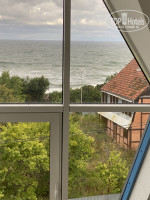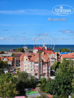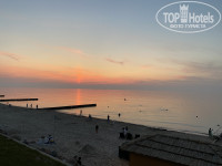 Отель расположен в 5 минутах ходьбы от западной части променада Зеленоградска. В номере: сейф, минихолодильник, чайник, чайные пары, сам чай и кофе, халаты, тапочки, фен, мыльные принадлежности, освежитель воздуха - все есть, воду по 2 бутылки (газ+негаз) пополняют каждый день. Люкс состоит из спальни и гостинной зоны с диваном, в шкафу есть матрац с дополнительными постельными принадлежностями. Выход на балкон из двух комнат. Мебель новая, на полу ковровое покрытие. Очень уютно и тихо!!! Если вы попадете в купальный сезон, на рецепции выдают полотенца. Нам с погодой повезло - накупались!