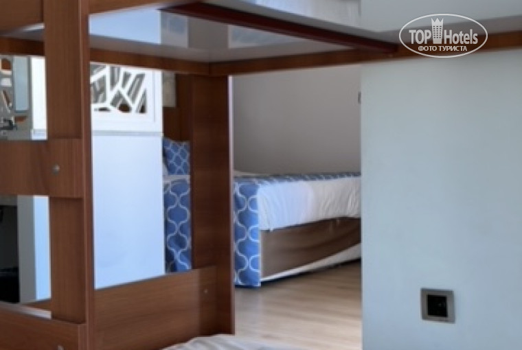 Номера: ужасные, кто их проектировал и придумывал не понятно. туалет за перегородкой - это кошмар. в целом нам достался по меркам этого отеля хороший номер. большая двуспальная кровать и двухъярусная для дочки. и номер побольше, чем другие, не все в одной комнате.
