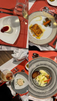 на выбор: баранина, курица или форель - брала форель, очень вкусная, салат цезарь, ризотто или паста - все вкусно, божественный куриный супчик, почему такой не варить в отеле для детей. и десерт. очень вкусные сыры, которых не было в ресторане и белое сухое вино.