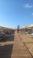 Пляж: песок. Читала в отзывах что на пляже окурки и пустые бутылки. Скажу честно: убирают пляж постоянно, но люди сами мусорят, хотя и стоят горшки для мусора. Наблюдала неоднократно.