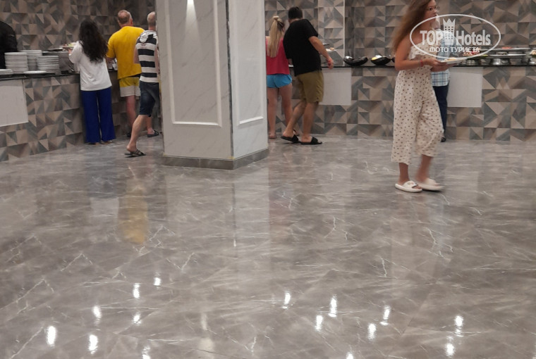 Вчера вернулись из данного отеля и Слава Богу, как говорится! Больше мы сюда ни ногой...В Египте были не в первый раз и уже знали к чему готовиться, но этот отель превзошел все мои ожидания.Заселили нас в номер в основном корпусе на 2-м этаже,из заявленного ремонта,там наверное только пол в холле.На этажах и ступеньках грязь, не мытая со времен постройки,грязная посуда лежит прямо в коридоре и не убирается неделями.Уборщику говорить бесполезно,он упорно делает вид что не понимает ни английского, ни русского, ни жестами.Номер убитый(кафель со сколами,зеркало с налетом вековой пыли, в холодильнике шапка из снега,сам он гудит нещадно,вся ванна в грязных пятнах и монтажной пене, раковине засохшие сопли предыдущих жильцов и пр.Окна у нас выходили на амфитеатр и разгрузо-погрузочную зону отеля.С самого утра рабочие кидают привезенные бутыли с водой,ящики,доски, все это сопровождается громкой арабской речью.Вечером-Арам-зам-зам для детей и караоке для подвыпивших гостей.Просили поменять номер, сказали номерной фонд занят полностью и даже деньги не помогли нам.Ладно-смирились,решили не портить себе отдых,потерпим.Шок номер 2 это столовая.Столов всегда не хватает,люди порой едят стоя за стойкой бармена.Да, как многие пишут,голодными не останетесь,но...то, что называют рыбой не ест никто,это есть нельзя, на курицу смотреть не могли на 4 день,более-менее мясо (по вкусу похоже на тушенку),бобовые добавляют всюду(для чувства сытости наверное), еда либо очень соленая,либо не соленая вообще. Салаты это то еще произведение искусства! В огурцы и помидоры добавят то макароны, то картошку оковалками,то местные сосиски. Дыни не вкусные,груши деревянные. Вкусный был только виноград, его разбирали моментально, а новую порцию приносить не торопились и сливы, но за 2 недели их давали 2 раза. На гриле очереди,повара никуда не торопятся. Предпочтения отдавалось арабам, которых там куча и несчетным количеством невоспитанных детей.Под "шведский стол" выделен маленький уголок, таких мы еще нигде не встречали и очень удивились, что это все...Напитки газированные наливаются в пластиковые стаканчики по 100 мл,что в условиях жары просто не набегаешься за ними.Чай и кофе в бумажные стаканчики наливаешь сам.Часто к середине обеда и ужина чай заканчивался, такое ощущение, что для такого большого номерного фонда выделяется только упаковка в 100 пакетиков чая. Просили принести еще, сказали нет больше. Кофематов в отеле нет, до них еще не дошла цивилизация. Кофе стоит рядом пересыпанный из банки в подобие цветочного горшка и не накрытый ничем. Воду в бойлер доливают из бутылей ведерком которое стоит на полу,этим же ведром наливают воду и в растворимые напитки. Молоко стоит рядом в пакете с надрезанным уголком, даже не удосуживаются перелить в емкость хоть какую-нибудь. В номерах даже нет чайников с чашками и минимальным набором кофе, чая и сахара.Я привезла с собой кофе, потому что предполагала ситуацию, что местный кофе может быть отстойный, но что за кипятком надо спускаться в столовую и только во время основного приема пищи-не подумала.Алкоголь я не пью, но муж сказал, что пить можно только виски, остальное бурда, особенно вино. Шок номер 3 это пляж! Как заявлено в карточке отеля, что до моря 200 метров-неверная информация. Пешком идти мин 15 по солнцепеку и +переходить дорогу, спасал