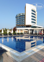 Вылет из Нижнего Новгорода ,после обеда . Обслуживал рейс Аэрофлот, качество сервиса хорошее.Во время полета прохладительные напитки и кормили ,туда и обратно. В аэропорту Анталии , при выдаче багажа ,столпотворение.На одной стойке, 4 рейса одновременно выдавали багаж. Прибыли в отель в 22 часа. Заселили в номер 607. Номер хороший с большим балконом, панорамный вид на поселок и море.Отель новый,расположен возле оживленной магистрали . Но так как ,в основном номера расположены в обратную сторону от автомобильной дороги,её не видно и не слышно.Рядом , через дорогу. по подземному переходу или через надземный переход можно пройти на большой рыночный комплекс.Интернет платный,за 11 ночей отдали 12 евро,связь устойчивая, в номере, в отеле и возле него.Платные услуги , принимают только евро.В номерах уютно,всё функционировало отлично.На стойке регистрации попросили дополнительную пластиковую карточку , чтобы включать кондиционер.во время нашего отсутствия. Всё таки на открытой местности температура воздуха доходила до 30 градусов в отдельные дни. Один день ,было пасмурно и прошел дождь с грозой и смерчем на море. Уборка номера производилась,но влажная уборка была не везде , и поверхностной. Полотенца меняли часто и с избытком, добавляли мыльные принадлежности. Нам понадобилась иголка с нитками, но они к сожалению в отели закончились. Питание в отеле нам понравилось.Много зелени,оливки,овощи и фрукты. Мясо и рыба , в индивидуальном предложении были редко и в основном на ужин.Мясо нужно было выискивать в горячих блюдах с овощами.Один раз угощались ,бараниной, креветками и красной рыбой. Официанты в ресторане работают нормально ,но за напитками приходилось ходить самим,в лоби бар. Теперь про пляж - большой , красивый , удобно расположен. Но очень грязный и не ухоженный. Пляжный работник только выдает матрасы для лежаков , но за порядком и чистотой не смотрит. Мы приходили с утра на пляж , а мусорные горшки возле пляжных зонтиков ,были заполнены. Да и сами отдыхающие были неаккуратными, курили и оставляли после себя мусор на пляжной территории .На пляже вообще закрыли женскую секцию с туалетами .Все пользовались мужской , три секции , одна из них для переодевания.Бармен на пляже очень громко включает музыку,получается дискомфорт . Шатл от отеля до пляжа идет примерно 3 с половиной минуты. Пешком, по дороге ,около 20 минут.Интервал движения шатл , в конце отдыха изменили, и после обеда сделали 2 часа вместо одного. Мы считаем , что отдохнули хорошо!Не переедали!Погода была комфортной.Персонал отеля доброжелательный.МОРЕ - Великолепное и Очень Теплое!Настроение положительное.Эмоции Хорошие!