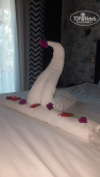 Отдых в данном отеле оставил очень приятное послевкусие). Интересные виды, бурная зелёная растительность, шикарный песчаный пляж и ласковое спокойное бирюзовое море)! Алкоголь импортный в двух барах, Лобби и Лагуна, но надо спрашивать именно импортный чтобы налили, как практически во всех ультра. Спасибо огромное работникам рецепшен за размещение на виллах напротив лагуны. Вкуснейший воздух из морского и хвойного ингредиентов, дышать одно удовольствие и плюс близость пляжа. Купались первый раз в семь утра, вода в этом октябре очень приятно тёплая. Из-за скорого закрытия отеля думали, что будет много урезано, но еда, питье, алкоголь, анимация все на хорошем с плюсом уровне. Еда достаточно разнообразна, на завтрак омлет, яичница, огромный выбор выпечки. Из фруктов мандарины, виноград два вида, яблоки, апельсины, дыни. В нашей большой компании каждый находил себе еду по вкусу. Отдельная похвала пицце, очень вкусная. Хотя аниматоры и говорили что конец сезона, но организовали нам пенную вечеринку - респект!, вечерами на пляжном баре дискотека, либо диджей, либо приглашённых певцы. А вот на площадку на этом танцполе стоило бы руководству отеля обратить внимание. Для танцев мало подходит, из натурального камня, много ямок и трещин. Днем там шезлонги стоят ,движение умеренное, а вот на дискотеке столы и стулья шатаются, и очень легко повредить конечности во время танцев)) спасибо утопии за выявленный по приезду перелом плюсневой кости стопы, а думалось на простой вывих)). Да и люди падали иногда). Вернулись бы сюда нашей компанией? ДА , однозначно. Только, пожалуйста, не дорожай))!
