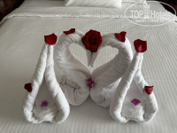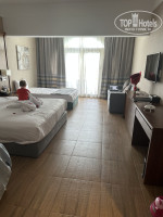 Мы оплачивали индивидуальный трансфер из аэропорта, поэтому приехали в отель одни, ночью, заселили сразу, на ресепшене был отличный сотрудник, все объяснил, выдал ключи и сразу с чемоданами нас отвезли в 2 номера смежных в Дюны, с бассейном. Номер отличный, не скажу, что там было уставшее, ремонта точно не требовалось ничему, нас все устроило. Мы сбегали в круглосуточный ресторан поужинать, детям отлично зашло, повар приготовил, все то и так, как мы просили, с учетом на детей. А потом был отличный отдых на 14 дней. Вкусная еда в ресторанчиках а-ля карт, алкоголь - на уровне, шампанское прекрасное. Анимация для детей - отличная. Единственное разочарование, еда для детей в основном ресторане, выбора не было вообще, каждый день сухие котлеты похожие на какашку, и не знаю , как точнее выразиться, жевались они, как подошва, и вкуса наверно были соответствующего, суп со специями, странные овощи, за радость были макароны, пюре и курица в кляре, но они исчезали в мгновение. Основная еда для взрослых- была разнообразная и вкусная. Дети выжили только благодаря пицце и мороженому из основного ресторана. Ну вот это и был, единственны минус для нас. СПА в отеле очень порадовал. Пляж не плохой, корал небольшой, очень понравился детям. Много времени прошло, всего уже и не вспомнить. Аптека на пляже была хорошая, покупали там памперсы, дешевле, чем в России, и необходимые лекарства, для горла, от температуры и кишечных расстройств, вполне по адекватным ценам и нормального качества. Рыночек на пляже тоже норм, покупали для детей игрушки, ценник адекватный. В аквапарк лазали через дыру в заборе, рядом с нашими номерами, отлично пролезли с двумя колясками, никто и слова против не сказал, лучше, чем кругами объезжать. Отдельное спасибо хочу сказать уборщику номера, не помню уже, как зовут, юноша с родинкой на лице. Всегда выполнял все наши просьбы, относился к нам с участием во всех вопросах. Помогал, открыть номер, когда дети захлопнули наружную дверь, со всеми входными карточками внутри- 2 раза)), угощал детей конфетами, отлично убирался, усердно плел фигурки на кровать))), спасибо ему огромное. Огромное спасибо официантам из ресторанчиков у моря, бармену на пляже и анимации, официаетам в баре лобби. Именно эти люди создают репутацию отелю.