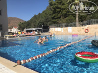 В начале приезда был шок. Приехали поздно, голодные и усталые, сразу разрешили нам поужинать. Т.к. пришли под конец ужина, остались в основном острые блюда, поэтому первые впечатления не очень. После ужина минут 15-20 ещё ждали заселения. Проводили нас в номер - семейный двухкомнатный, хотя мы бронировали стандарт, за что отелю огромное спасибо. В номере шпарит кондей, очень холодно, а пульта от кондея нет. Кроватей только три вместо 4х. Но немного терпения и пару звонков на ресепшен - и всё уладилось, мальчик принёс кровать, на телефоне через приложение выключил кондиционер. Главный шок - расположение нашего номера напротив анимации, а она шла каждый день очень громко до 23:30. Дети возмущались только первую ночь, потом засыпали прямо под шум, мы привыкли спустя две ночи) хорошо, что уже не так жарко в октябре и можно было плотно закрыть окна. Пляж у отеля тоже первое время шок - похож на сочинский чёрный песочек, ещё и весь в окурках) но мы быстро сориентировались и на нём не сидели. Если пройти 10 минут налево по набережной, то будет бесплатный пляж с одними зонтиками, но там тоже много окурков, зато море чище. А вот если пройти где-то полчаса налево 1,8 километров, то начинается променад до Мармариса и не доходя до Icon beach шикарный дикий пляж! Он и запечатлён на моём первом фото. Там чистейший песочек без мусора, никто не курит в лицо, изумрудная вода, кусающие за ноги рыбки, маленькие моллюски) приплывал кальмар и осьминог. Там нет буйков, туалетов, зонтиков и шезлонгов, но для любителей этого всего есть куча платных пляжей за напиток, как уже многие здесь писали. Так что не понимаю нытья по поводу отельного пляжа, это вам не Кемер, здесь надо ходить ножками. Мы ходили с двумя детьми и прекрасно себя чувствовали:) но вернёмся к отелю.