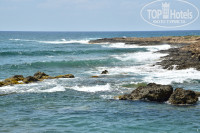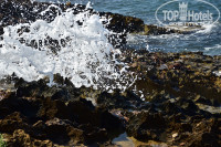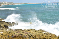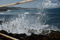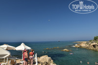 4. Море. Очень важно!!!!! Не все отели сообщают о том, что у них есть выход к морю. Читайте отзывы, перед тем как сделать окончательный выбор того или иного отеля. Большинство пляжей в Пафосе каменистые, со скалами и обрывами. и очень редкое явление прямой доступ к воде. Но в Akti есть своя небольшая бухта, откуда по ступенькам без труда можно зайти в море. Из соседних отелей, отдыхающие постоянно приходят на эту бухту и купаются там. Это конечно минус, т.к. бухточка маленькая, а отдыхающих много. Вход сначала пологий, с постоянным уклоном и метров через 8 уже глубоко. Вода очень прозрачная, глубина отличная! Старайтесь не плавать влево, т.к. в этой части сильный прибой и можно с легкостью быть брошенным на скалы. Лежаки у бассейна и у моря можно выбрать на плитке, газоне или на грунте, все с зонтами и столиками. В отзывах писали, что кого-то обокрали …. Мы оставляли вещи на лежаках и уходили…никаких проблем не было. Возможно, это воля случая.