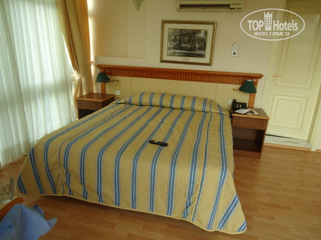 Заселили сразу, номер без балкона, но с хорошим видом на горы, просторный, чисто и аккуратно, убирали каждый день, постельное белье раз в 2 дня. Большая красивая территория, сосны, пальмы.. Питание: если не любите яйца, то лучше поспать до обеда, на обед и ужин выбор очень хороший, правда не все из этого можно есть, но голодными не останетесь, мясо несколько видов, очень вкусное рагу с мясом или печенью и много фруктов. До пляжа далеко (минут 10 ходьбы), если это можно назвать пляжем клочок 40х50. Шезлонги лучше занимать пораньше, а вот с местами у бассейнов проблем нет, на территории три бассейна, 2 в виллах из них 1 с баром и 1 с горками на территории комплекса. Анимация оставляет желать лучшего. Персонал отеля очень приветливый, практически все знают русский язык. В баню, сауну желающих не много, а тренажерный зал вообще пустой, что касается контингента - большинство русских и это понятно, из них молодежи процентов 40 не больше.