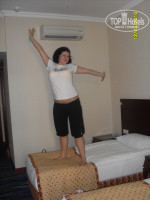 Первый раз в Турции. В этот отель попали случайно. На наше счастье в отеле куда был тур (Sea Gull 4*) не оказалось свободных номеров и нам предложили этот отель на 4 дня с 12 по 16 сентября 2010г. После мрачного интерьера, старого здания вышеуказанного отеля. Grand Ring нас впечатлил более чем. Мы приехали втроем - я и две дочери 19 и 20 лет. Все испытали восторженное чувство, когда вошли в номер 1121. Просторно, светло, чисто, внушительная ванна, большой балкон, огромный шкаф-купе для вещей. Питание очень даже вкусно и разнообразно. Мы ехали не поесть , а за впечатлениями. Впечатлений море и океан. Аниматоры - Мариночка - супер-профессионал чудо чудесное (детская анимация, аэробика, гимнастика) высшая оценка 10 баллов. Марьяна - хорошая девочка. Карлос (АНИМАЦИОНЕ и ПРЕЗЕНТАЦИОНЕ) высший балл, работа профессиональная. Бобо - чудный паринек. От них заряжаешься энергией и позитивом. Приятные люди во всех отношениях. Дискотека на нижнем этаже (отдыхающих не беспокоит) очень весело и достаточно просторно. Практически всегда аншлаг. Остаток отпуска с 16 по 24 сентября провели в отеле Sea Gull 4*, а там аниматоры мальчики - пупсик Паша 45 лет и 50 лет ловелас Хасанчик ( я не вру) , мы с девчонками рыдали в голос тоскуя по этому отелю. Размещение Grand Ring 4 балла - номер оформили в течение 10 мин, один минус в ванне подтекал унитаз (постоянно небольшая лужица) и вода в ванне плохо сходила (горничная так и не поняла что я от нее хотела - вызвать сантехника) Это мелочи. Уборка ежедневная, замена белья и полотенец ежедневная. Питание 5 баллов (постойте в очереди с пустой тарелкой в отеле Sea Gull и все поймете) фигурки из овощей впечетляющие. Сервис 5 баллов - Ребятки официанты очень улыбчивые и приветливые в основном по-русски понимают, некоторые шпарят как на родном. МОЛОДЦЫ. (отель Sea GuLL - очень много обслуживающего персонала, который по-русски вообще не втыкают, да и по английски тоже). Бармен Зазан (Саша) отдельный привет от Маши. Очень рекомендую отдых в этом отеле. Две территории. Новое здание считается второй линией, но мы засерки от номера до кромки моря в развалку 3-4 минуты, дорогу переходить не надо, т.к. прорыт тоннель. Это даже больше плюс чем минус. Если получится (финансы) поедем с девчонками на следующий год. Считаю что из 12 дней отпуска, полноценные первые четыре дня были самыми запоминающимися.