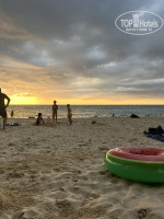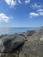 До пляжа идти минут 5-7. Пляж красивый. Лежаки с зонтиками платно. Вокруг много кафешек.