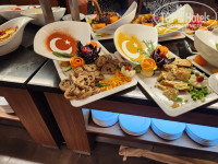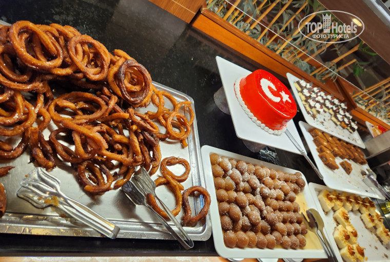 Еда в целом превосходная для отеля такого уровня, действительно большое разнообразие, все свежее, хорошего качества, очень понравились десерты, алкоголь бесплатный, вино все местное, но выбор хороший, 3-4 варианта.
