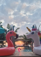 На территории есть отличный бассейн, из которого открывается прямой вид на океан! Пляжные полотенца выдаются в любое время и в любом количестве! За весь период отдыха не возникло ни одной проблемной ситуации с администрацией, всегда все улыбаются и готовы помочь! Завтраки вполне стандартные, нам было достаточно. Кругом отеля тишина и спокойствие, а если нужен более весёлый отдых, то вы всегда можете поехать в ближайшие поселки, которые находятся в пешей доступности или в 5 минутах на тук-туке. А ещё в отеле есть услуга для больших номеров, когда вам делают массаж прямо на вашей террасе в номере!! Очень круто!! Мы остались довольны!) Кстати, возле отеля есть школа серфинга.