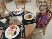 Отель огромный, еды очень много, просто надо выбирать. Вкусная свинина, картошка фри, выпечка, мороженое. Прикольные помидоры))) блюда украшают, всё свежее и тёплое, но лучше приходить к открытию)))