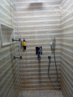 В санузле есть ванна, верёвочка-сушилка над ней, две раковины, два стакана, унитаз с гигиеническим душем, стеклянная дверь, за которой душевая, в которой есть полочка для любителей привозить свои гигиенические средства.