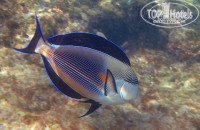 пыльный коралл, но мы там видели даже крылаток, мурен и змей. А так, очень много хирургов,