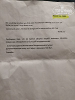 Мы поспешили на ресепшен прояснить ситуацию. И что вы думаете, нам выкатили распечатки фото испачканного белья, полотенец... Фото не несли никакой информации где и когда они были сделаны, просто фото какого то грязного белья. Ужас какой то. Отель откровенно занимается отжимательством денег у туристов. Ничего доказать им не возможно. Они сохраняют спокойствие, мы нервничаем. А итог один - если вы не истратили депозит, его вам не вернут!