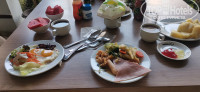 Завтраки нас вполне устраивали и ассортиментом, и качеством приготовления (домашние у нас гораздо скромнее))). Действительно, все столы шатаются и не хватает эстетики и ухоженности в столовой, хотя перед отъездом на столах появились горшочки с цветами.