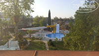 Территория относительно небольшая, но очень зеленая и грамотно зонированная. Так же везде чистота и порядок, цветы, лужайки, фонтанчики. Есть отдельный бассейн с 2 горками - работали примерно с 10 до 17, глубина 110, плюс отгорожен кусочек для малышни глубиной 30 см. Около него отдельный микро-бар, есть душ и туалет, несколько лежаков. Большой бассейн с другой стороны здания, глубина 140 -160 см, достаточно много лежаков в тени и на солнце, pool-бар, столики, сцена, есть туалет и душ. Отгорожен отдельный кусок для малышни, глубина 30 см. В течение дня играет спокойная музыка иностранных исполнителей. В баре местные крепкие напитки - водка, джин, раки, пиво, вино красное, белое, розовое, разливные газ. напитки, вода в упаковках. Качество - турецкое. Весь иностранный алкоголь, все коктейли, все напитки из отдельных бутылок и банок - за деньги, от 4$ и выше.
