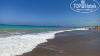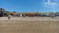 Пляж в целом не плох, достаточно широкий, песчаный, есть запас лежаков и матрасов (хотя лежаки видавшие виды, многие - с трещинами). Думаю, что места должно быть достаточно даже в сезон. Но уборка заключается только в выносе мусора из горшков, поэтому чистота оставляет желать лучшего. Есть 2 кабины для переодевания, душ и мойка для ног, туалет (относительно чистый). Бар на пляже - пиво, вино, вода, разливные газ. напитки с 10-00 до 17-00. В обед с 12 до 13-30 можно покушать: суп, нагетсы, тушеные овощи, гарнир (7 дней из 7 - рис), фрукты, ингредиенты для самостоятельного приготовления бургера. Тут же женщина печет гезлеме примерно с 11-00 до 15-00, невкусно. Пару раз обедали на пляже, в отель не ходили - норма. Вход в море - мелкая галька, глубина нарастает довольно быстро, в 3 метра от берега уже скрывает. Буйки достаточно близко от берега, за ними постоянно гоняют катера и гидроциклы - не очень приятно. До пляжа придется прогуляться 400 м., не критично, но тени по дороге практически нет, в жару может быть не очень приятно.