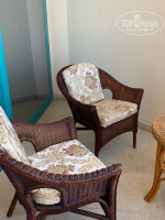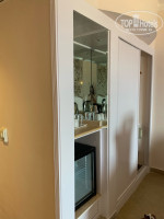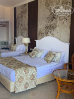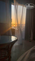 Наш номер был 1941, открывается карточкой, достаточно большой, при входе ванная комната, всё работает, не новое, но и не древнее, мягкие, белоснежные полотенца, по три штуки на человека, плюс два маленьких для лица на раковине, гель, шампунь, лосьон для тела, фен, дополнительное маленькое зеркало, что очень удобно, сушилка, запас туалетной бумаги. Далее, комната, шкаф, небольшой холодильник, чайник, чашки, стаканы, ну и соответственно чай, сахар, кофе. В шкафу сейф, бесплатный, не пользовались, т.к. смело всё оставляли на виду и ничего не пропало, с этим в отеле всё норм. Две кровати, одна большая, другая чуть меньше, удобные, бельё чистое, приятное, много подушек, одна большая тумба между кроватей, стол с зеркалом, телевизор, один русский канал, кресла и столик в номере и на балконе, кондиционер, всё работало на 5! Шторы! Их три, блэкаут, тюль, простые.Шикарный вид на море!!! После пяти дней, заменили постельное, полотенца меняют каждый день, даже если они не на полу, уборка и обработка от насекомых тоже. Звукоизоляция неплохая, мы слышали звуки только из коридора, соседние номера не беспокоили. Каждый день после уборки, разные фигуры из полотенец на кроватях)) Две бутылки воды в номер, каждый день. На территорию можно спуститься по лестнице, попадаешь сразу к бару и морю, или на лифте, их три на этаже. Два очень красивые, открытые, стеклянные. Персонал на этаже постоянно, если руки заняты, помогут открыть дверь.