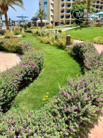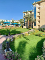 Небольшая, но уютная и зелёная, много растений, всё ухоженное, есть где пройтись вечером, всё рядом, обработка от мух и насекомых, взрослый и детский бассейн, работают до заката, на бассейне выдают полотенца, мягкие и большие, которые вечером удобно сдать и не тащить в номер, всегда на месте человек, который их принимает. Еще одна палаточка с полотенцами на пляже, при получении проводили до лежаков и помогли застелить. Есть детская комната, ближе к пляжу аквапарк с горками и ещё один большой детский бассейн, бассейны чистят и пылесосят каждый вечер, наблюдали с балкона. Небольшой магазинчик, со всем необходимым на отдыхе, сувениры. Спа центр Клеопатра. Итальянский ресторан. Вечером всё красиво подсвечивается.