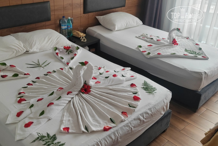 Прилетели с мужем ночью, утомительный трансфер 2 часа из Анталии, и вуаля , в 3 ночи нас заселили а клеопатра Фатих)) Зашли в номер, сразу всё понравилось, белоснежная постель, полотенца тоже свежие, нормальня туалетная комната. Балкон, не смотря на то, что это всего третий этаж, вид был прекрасный)) Утром пошли на завтрак, нормальня, обычная еда, яйца, омлет, много салатов и свежих овощей. Перекулисли, и на моооорееее, сначала немного расстроили волны , купаться было не комфортно, но потом привыкли))) Лежаки платные, на 21 пляже в Мае цена два лежала и зонт 210 лир. На обед ходили редко, не могу сказать ничего. На ужин ходили всегда, еды даже более чем достаточно, по сравнению с отдыхающими, в мае отель был заполнен хорошо если на 10%, мы с мужем удивлялись, кто это всё ест)))) Ну и после ужина конечно же бар)) В баре всё тоже отлично, спиртное наливают с маленьких бутылочек,прям при тебе открывают, никакого обмана, всё прозрачно, пиво тоже , ефес с стекла. Респект ребятам, персонал очень хорошо относиться, тепло, знакомятся, общаются, было не скучно )) Мы улетели, там готовился к открытию платный бар, жаль , что мы в его не попали)) Экскурсии ге дорогие, обязательно берите прогулки на корабле , очень понравилось. Полетайте с парашютом, в Алании это относительно не дорого, в сравнение с Черногории 100€, в алании 50€. В общем отдых удался. Приезжайте с хорошим настроением , и всё понравится!!